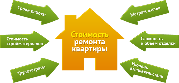 | Перед тем как браться за ремонт, нужно бы определить количество денежных средств,что будет потрачено на удовлетворение Ваших желаний в обстановке квартиры.Но сделать это самостоятельно довольно трудно, т.к. очень много разных представлений и мнений о будущем интерьере. Цена на ремонтные работы зависят от многих факторов: сложности проекта, от требуемого качества и т.д.