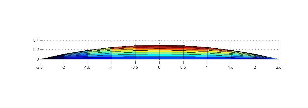 Для наглядности пример расчёта профиля опалубки при: f=0.3 м, 2a=4м, 2b=5м, n=5,m=10.