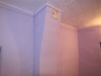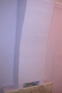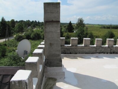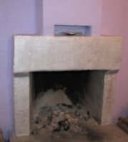 | На втором этаже. Стены из шлакобетона. Перекрытия монолитные. Часть топки и дымохода - в стене. Труба тоже из шлакобетона.