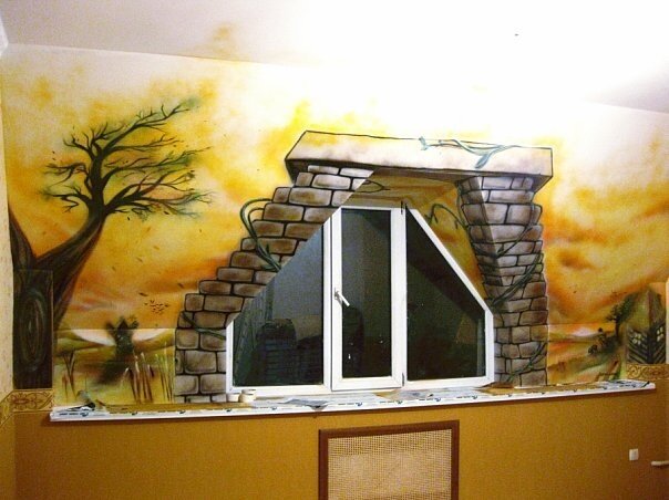 | Почему нет, арт сейчас в моде. Только следует помнить, что теми аэрозольными красками, что Вы пользуетесь при создании граффити на улице пользоваться совершенно нельзя: они очень токсичные. Обычные акриловые вполне подойдут, так как речь идёт про одну комнату,очевидно она будет именно для Вас, поэтому можно смело экспериментировать.