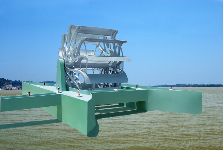 Большая турбина - концептуальный дизайн (30 метров в диаметре) из нержавеющей стали разработана как для туристического аттракциона и как для мощного генератора электроэнергии . Электроэнергия производится от текущей реки, которая течет через турбины вращаю... Читать дальше » |  |  |  |