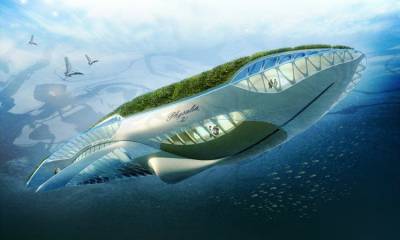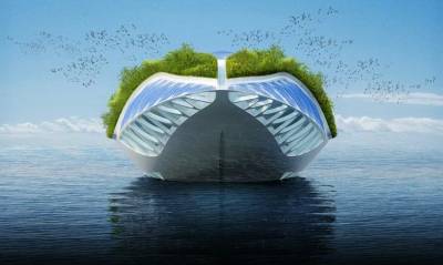 Конструкция являются, конечно, фантастической, но это удовольствие, чтобы обдумать их и надеемся, что когда-нибудь этот тип утопической технологии фактически будет существовать. Его новейшее видение плавающей среды, наполненная садами, покрытой зеленой крышей и тонкопленочными солнечными батареями. Гидротурбина производит электроэнергию из движущейся воды под лодкой, таким образом, что вся энергия лодки генерируется из возобновляемых источников.