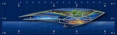 Слой TiO2 реагирует с ультрафиолетовыми лучами, чтобы очистить воду. Дополнительная вода перекачивается через системы сад, которая биологически фильтрирует из загрязняющих веществ. Внутри есть четыре различных тематических сада, названные Земля, Ветер, Огонь и Вода, которые представляют четыре элемента.