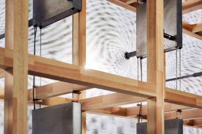 Легкая древесина обеспечивает основу для структуры. Здесь же находится механизмы, которые могут быть запрограммированы по-разному, чтобы предложить альтернативную хореографию.