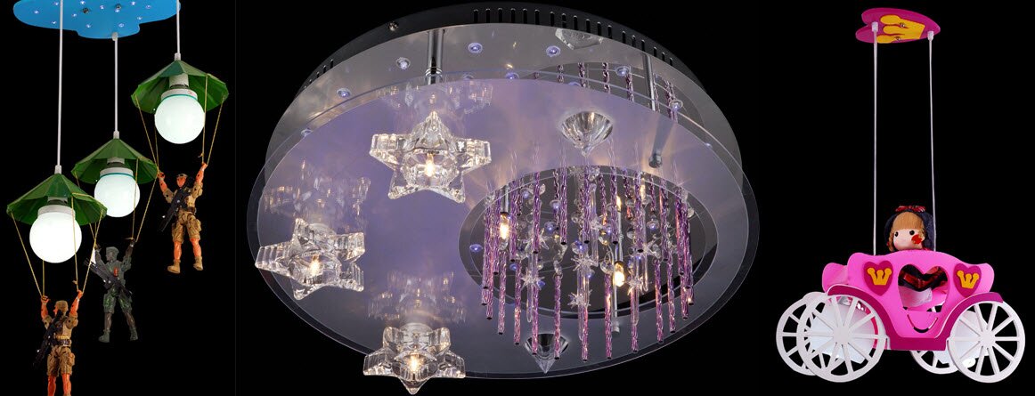 В первую очередь, детские люстры должны отвечать всем критериям безопасности. А это значит, что они должны комплектоваться надежными креплениями, которые бы исключили возможность падения источников света.