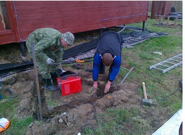 2. Можно сделать специальное заземление. Вам пригодится труба металлическая и стержень. Хорошенько прочистите его.Вбейте трубу в землю так, чтобы верхний ее конец был ниже уровня поверхности земли . К трубе приварите стальную проволоку диаметром около 5 мм. Это и будет отвод заземления. Место сварки и участок проволоки, идущий к поверхности земли, покройте битумным, асфальтовым лаком для защиты от гниения. После этого верхнюю часть всего стержня или трубы посыпьте полностью землёй.