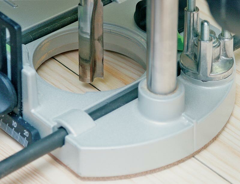 5. Точная настройка позволяет добиться полного совпадения линии разметки и оси фрезы. Для облегчения процедуры на подошве делают «мушку-прицел», по которой легче ориентироваться.