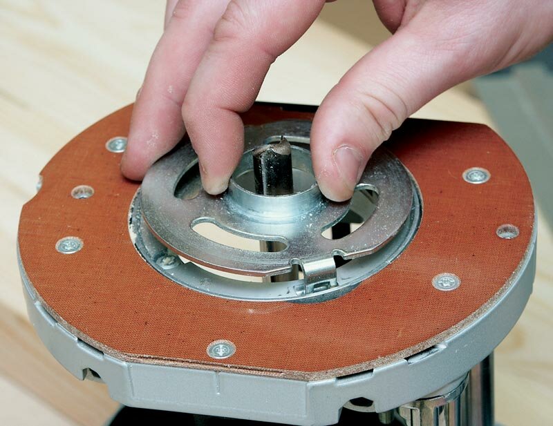 На фрезер устанавливают специальную копировальную втулку. Для повышения точности вертикального позиционирования она имеет бортик на опорном кольце, позволяющий захватить пластину шаблона с двух сторон. Руководствуясь общим правилом ведения инструмента против хода фрезы, заготовку проходят от центра к краю. Предварительно рекомендуется сделать подрезку (пройти шаблон по выступам, не «заходя» в них) — это позволит избежать сколов.