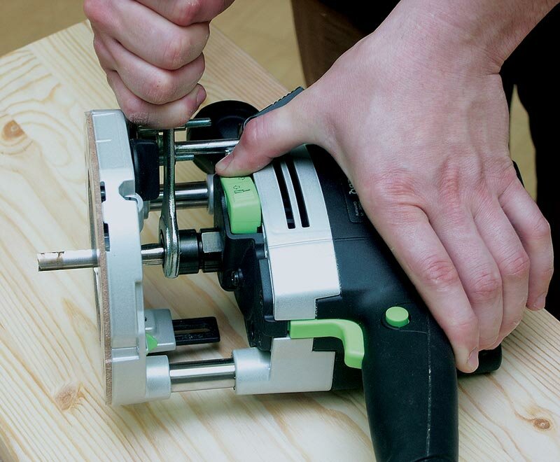 Определившись с оборотами и типом фрезы, устанавливают оснастку. Сделать это верно помогут риски на хвостовике - ориентироваться нужно на них. Если требуется отступить от предписания (или его попросту не оказалось), пользуются простым правилом - фиксируют 2/3-3/4 от общей длины хвостовика.