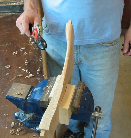 Следующим шагом надо вырезать кривые на спинке. Его расточительно вырезать так, но гораздо проще, чем пытаться согнуть дерево.