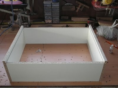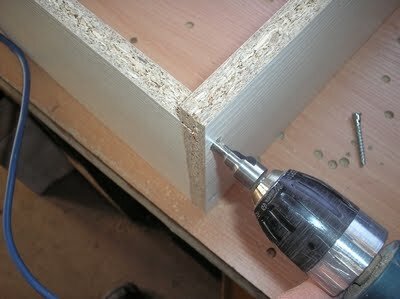 Скручиваем ящик (будем считать, что кромки уже наклеены) шуроповертом или конфирматным шестигранным ключом.