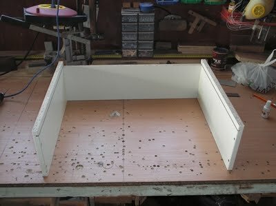 Пусть проем, в котором будет установлен ящик равен 400мм. В итоге имеем: Боковые заготовки 500*113, фронтальная и задняя, внимание, 400(проем) – 26(направляющие) = 374(ширина ящика) 374 - 16 -16 (толщина боковых сторон) = 342мм