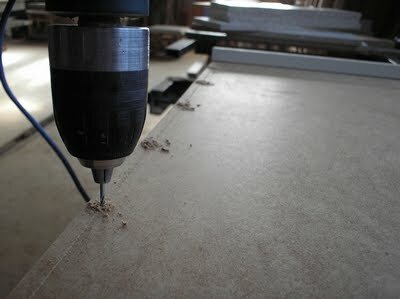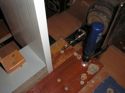 После чего, с наружной (лицевой) стороны заготовки, зенкуем отверстия для удобной посадки шляпки конфирмата (евровинта).