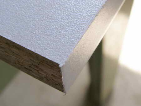 После того как обрезали все излишки, край кромки необходимо зачистить мелкой наждачкой. Показатель качества - кромка не должна цепляться, когда проводим рукой (ногтями) по плоскости детали. Тогда кромка прослужит долго и не будет отрываться от случайных неосторожных прикосновений.