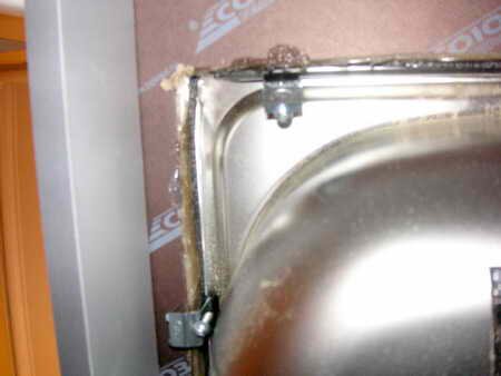 Устанавливаем крепления и приклеиваем уплотнитель входящий в комплект мойки. Перед наклейкой уплотнителя, бортик желательно обезжирить, ну к примеру, обычным растворителем "646".