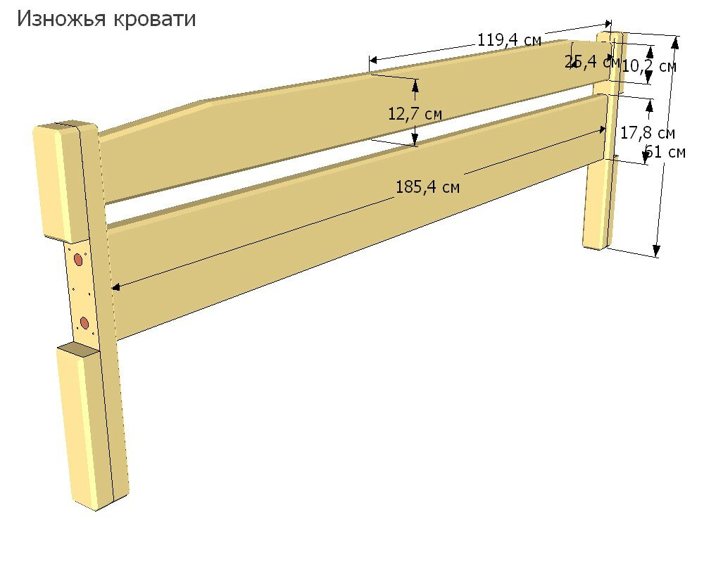 Вашему вниманию представлен чертеж двухспальной кровати для матраса 180x200 см. Также есть чертежи односпальной и полутораспальной кровати. Подробно про размеры матрасов здесь.