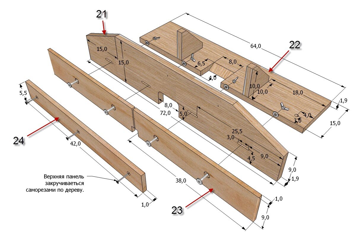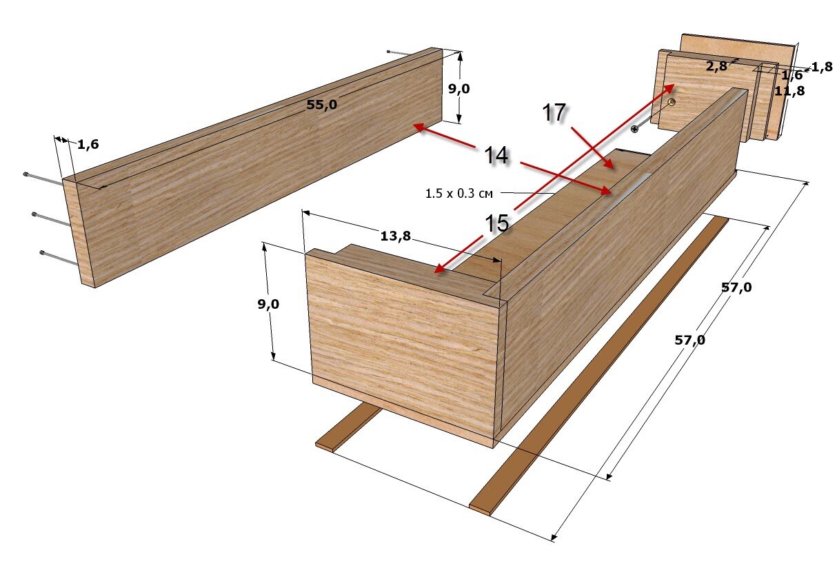 | 21 | Стенка упора(фанера или МДФ) | 1 | 72,0 х 15,0 х 1,9 |