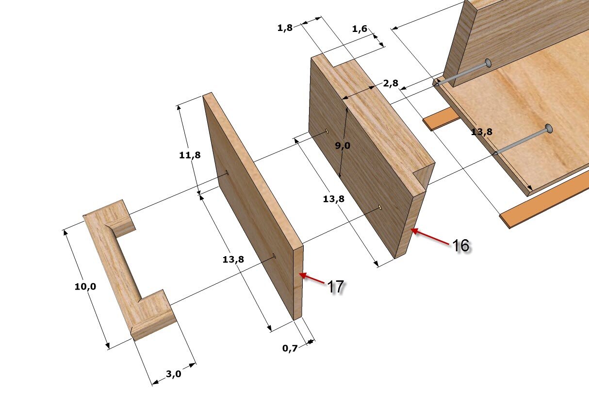 | 15 | Передняя и задняя боковина ящика | 8 | 13,8 х 10,0 х 2,9 |