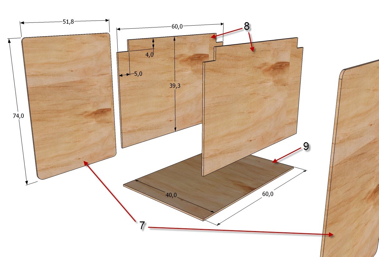 | 7 | Боковые панели (фанера) | 2 | 74,0 х 51,8 х 0,6 |
