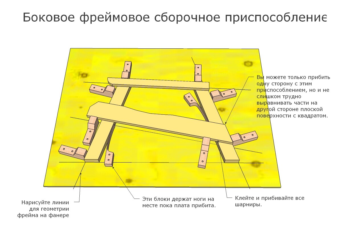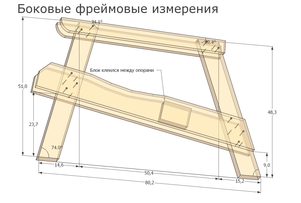 Основная структура шезлонга является стороны. Боковые рамы собираются в первую очередь. Ноги только части, которые касаются земли, должны быть сделаны из кедра.