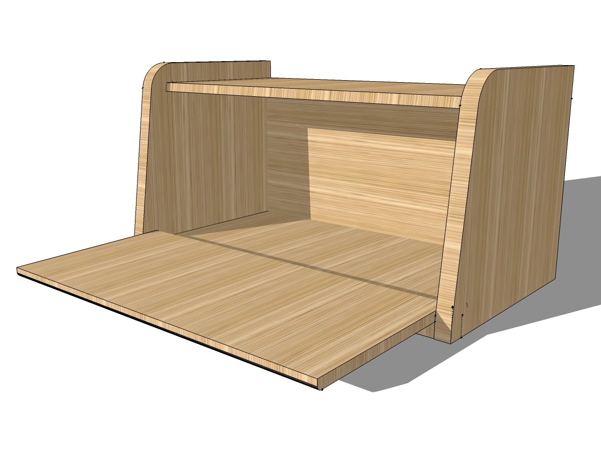 На детали верха впереди угол должен быть сокращен(скос) на 80 градусов. Это делается для того, что дверь хлебницы упирался в верхнюю часть равномерно, а не на очень тонкую грани.
