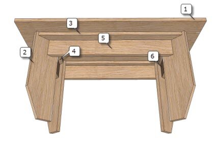 Когда все четыре ножки будут прикреплены к длинным рельсам, соедините короткие рельсы. И далее закрепите и приклеите детали фартука. Верхняя часть крепится к основанию через рельсы.