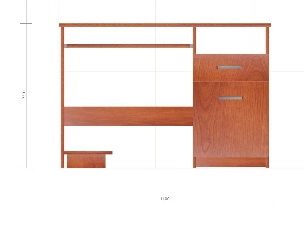 Размеры компьютерного стола ширина 110 см, высота 75 см и глубина 55 см.