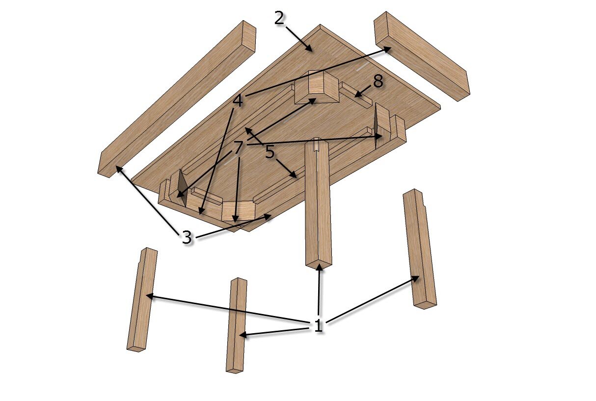 Представлен чертеж журнального столика, который можно сделать легко и просто. Тип древесины является личным выбором, но должна быть хорошего сорта. Для столешницы, использовать кусок МДФ толщиной 20мм. Подготовьте все детали стола с размерами, указанными в плане.|  | ||