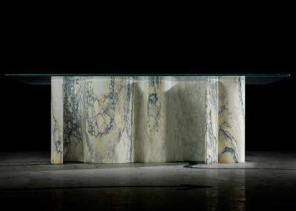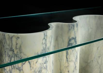 Мраморное основание стола были вырезаны в виде ряда вертикальных связанных кривых, появляясь твердое, если смотреть спереди. По словам Стефано Боери на мраморном основании, прозрачность стеклянной поверхности готов к нечистоплотности повседневной жизни.