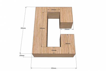Этот деревянный узел можно сделать самому с помощью электролобзика и необходимого материала. 3 части узла древесины выполнена из доски толщиной в 20 мм, древесина желательно должна быть из твердых пород дерева. Если вы хотите сделать деревянный узел побольше или под толщину имеющей доски, то размеры должны быть рассчитаны соответственно. Количество нужных деталей размером 80х60х20 3 шт, из них деталь А 2 шт и деталь Б 1 шт.