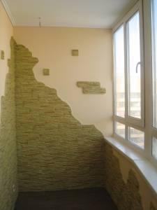 Нус. Вернемся к лоджии. Цвет нашего декоративного камня мы оставили без изменений. Зато остальную колеровку мы проводили так, чтобы цвет подходил к нашему камню.