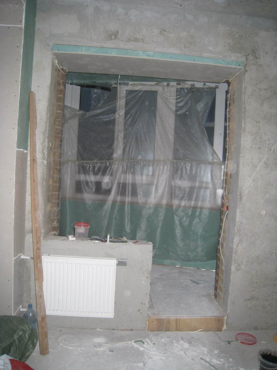 В этой статье мы расскажем, как производилась отделка кухни «с нуля». Т.е. первоначально это были голые цементные стены, цементный пол и потолок. При создании интерьера использован следующий современный прием. Лоджия присоединена к помещению кухни. Из бывшего подоконника была сделана барная стойка. Ну а теперь описание самого процесса ремонтно-строительных и отделочных работ. В первую очередь были сняты окно и балконная дверь.