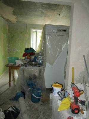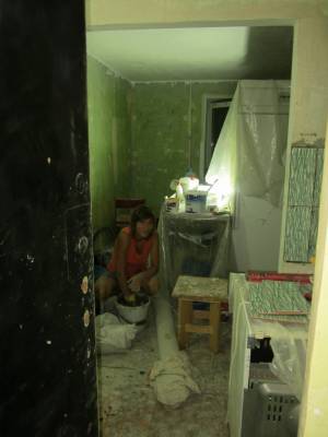 Первого августа мы съездили за стройматериалами. Самые сложные сложности на начальном этапе ремонта, как оказалось, это тяжесть упаковок с наливным полом, цементом и плиткой. Мы делали ремонт один месяц и десять дней. Сами. Лучшими помощниками нам были музыка, и одиннадцати литровая кастрюля ледяного ягодного компота.