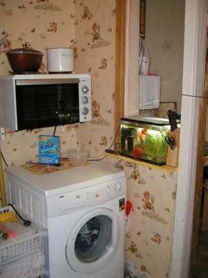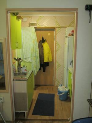 Изначально, определились: стиральная машина останется в комнате, больше нигде ей места нет, а в прихожей будут холодильник, плита и раковина. Поначалу хотели оставить старый линолеум, но не смогли удержаться. Теперь ничуть не жалеем.