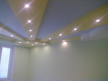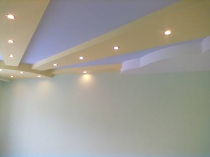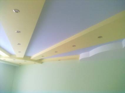 Затем сметаем всю пыль с короба кисточкой и проходим проявочным слоем жидко разведенной основной краской для проявления возможных неровностей, которые устраняются окончательной шпаклевкой финишной, эти места снова шлифуются и опять покрываются проявочным слоем жидко разведенной краски. Если в коробе предполагаются осветительные приборы, провод закладывается сразу после разметки перед монтажом металлического каркаса. Отверстия делаются перед покраской, основной цвет краски наносится не менее 2 слоев.