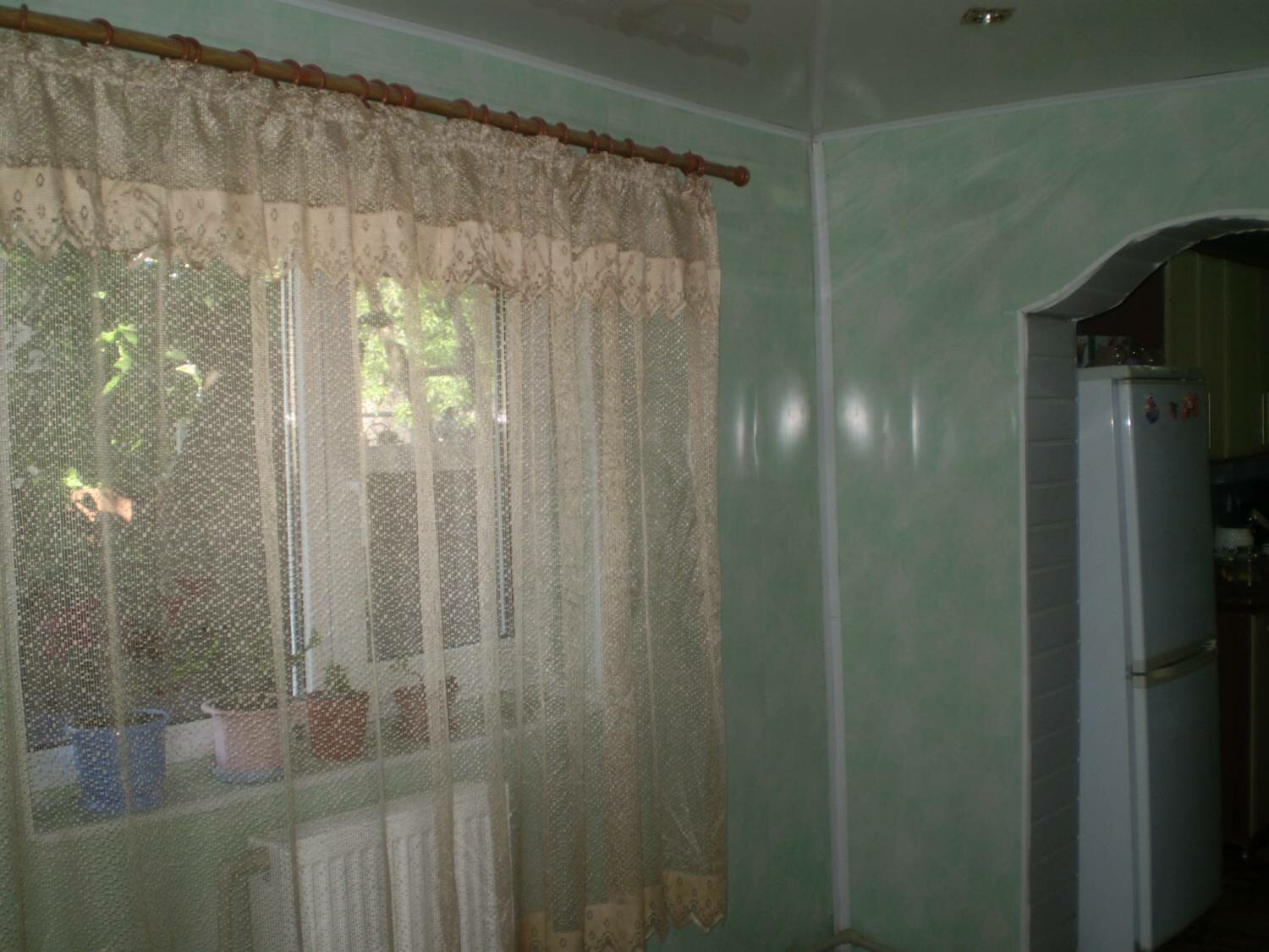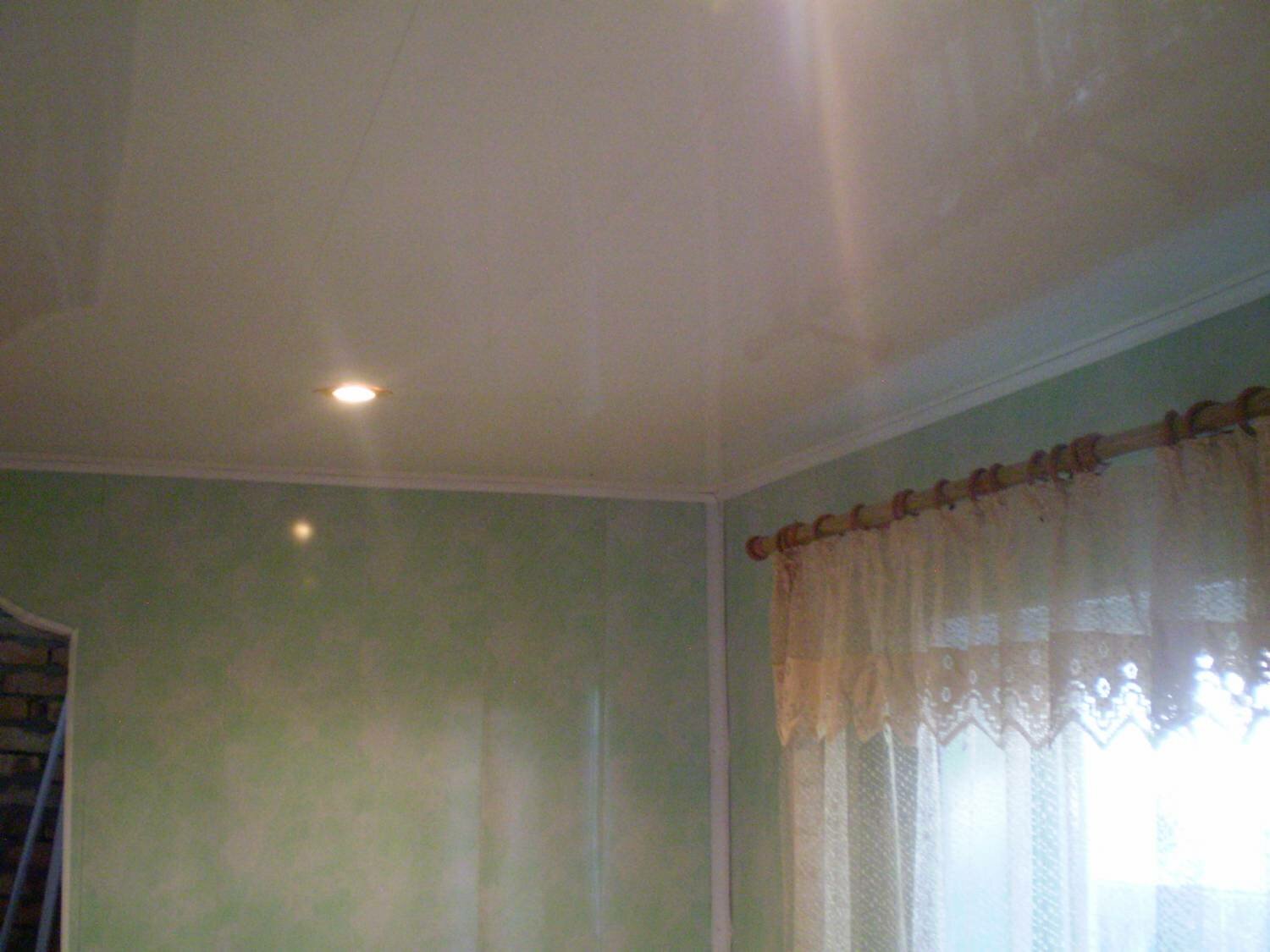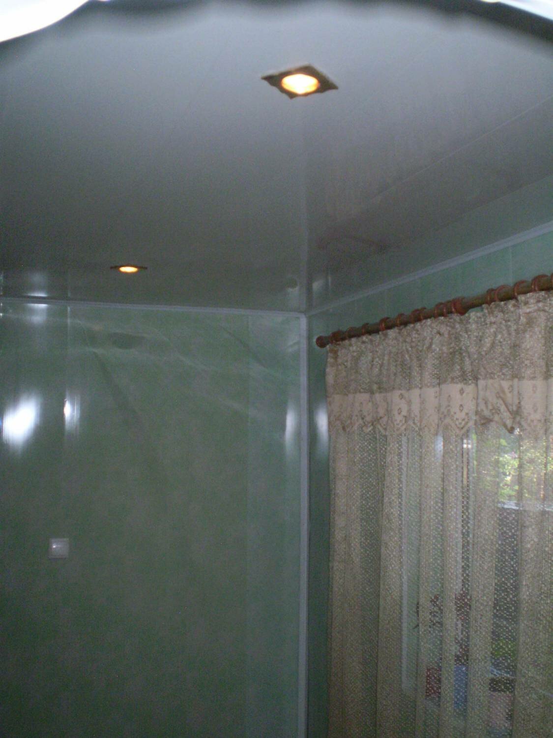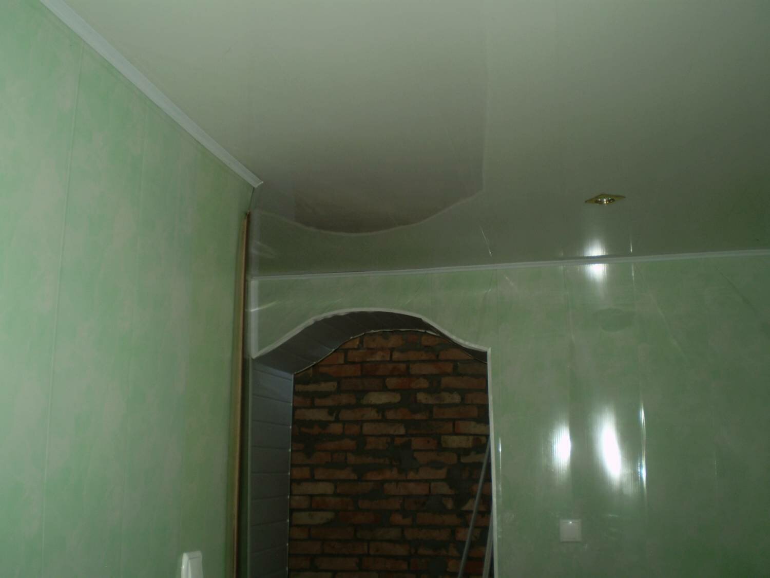 Когда каркас под арку и под вагонку был готов приступил к обшивке потолка. Отрезав полосу пластиковой вагонки нужного размера закрепил ее с помощью строительного степлера к каркасу на потолке. После этого подготовил следующую полосу и вставил её в паз предыдущей полосы и закрепил. Таким способом двигался до самого конца потолка.