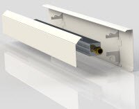 Плинтусные конвекторы. Это отопительные приборы, которые располагаются не только под окнами, а в основном вдоль наружных стен, занимая при этом незначительное пространство (не более 10 см по глубине и 20-25 см по высоте). Их использование характерно для отопительных систем Северной Америки. В России около 10 лет продаются американские приборы на медных трубах с алюминиевым оребрением. КЗТО с 2002 года также приступил к выпуску аналогичных конвекторов как с медными, так и со стальными трубопроводами.