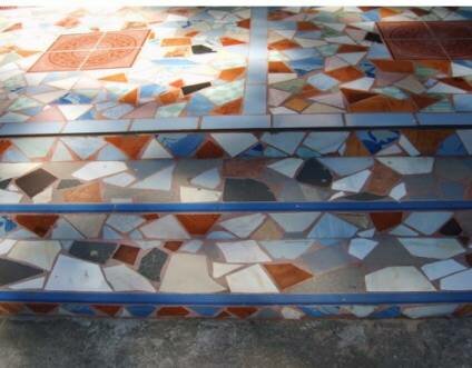 9. Когда раствор на дорожках немного схватился , можете приступить к декорированию камнями, мозаикой из плитки.