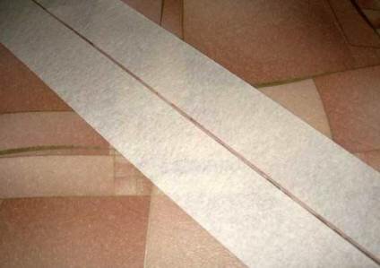 Дабы линолеум во время нарезки не сдвигался со своего места, сверху на него нужно приложить какой-нибудь массивный предмет. Не спеша прорезаем несколько слоев по линейке и потом собираем обрезки.