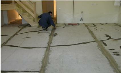 1.Для начала нужно постелить гидроизоляционный слой, чтобы не огорчить соседей живущих ниже. Промышленный полиэтилен, рубероид и рулонные гидроизоляционные материалы, могут быть гидроизоляцией. По поверхности всего пола раскатывается материал, так чтобы на стенах оставался запас на предполагаемую высоту пола. Если листов гидроизоляции несколько, то их следует класть внахлест порядка 15 см. Для гидроизоляции не нужно класть материал, а просто хорошенько замазать все стыки плит и трещины пола алебастром или раствором.