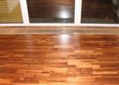 Отделка пола ламинатом самому Как правило, ламинатом называют ламинированное напольное покрытие, однако в действительности данное название обозначает слоистый пленочный материал. Несомненным плюсом ламината является то, что при своей относительно небольшой стоимости он создает покрытие, которое внешне напоминает паркет, кроме того, ламинат более износостойкий. В специализированных магазинах ламинированное покрытие продаются в виде панелей размерами 120х20 сантиметров.