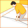 Отмерьте середину длинной стены комнаты и проведите линию на полу меленым шнуром под необходимым Вам углом (например, 90 градусов). Отмерьте середину короткой стены и повторите операцию. В итоге у Вас должно получиться 2 пересевающиеся линии. Снимите плинтусы и дверные косяки.