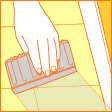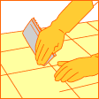 Возьмите скребок с резиновой накладкой и аккуратно нанесите им раствор в щели между плитками по всем направлениям. Проверьте, чтобы раствор был абсолютно в каждой щели. Используйте острый угол шпателя для того, чтобы провести тонкую линию раствора. Вытрите весь лишний раствор влажной губкой до того, как он засохнет. Отполируйте плитку сухой тряпкой