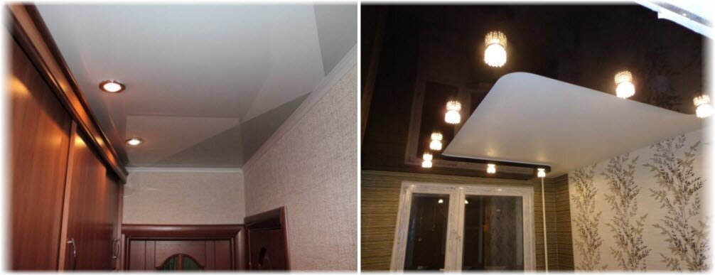 С помощью подобных конструкций можно сделать слишком высокий потолок ниже, тогда узкое помещение будет выглядеть презентабельнее. Кстати, в таких прихожих нет смысла использовать глянцевое полотно. Дело в том, что так помещение станет слишком мрачным и унылым. Отличным вариантом станет матовый потолок. Полотно такого цвета идеально подходит как для многоуровневых конструкций, так и для обычных - одноуровневых.