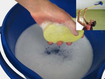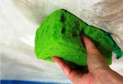 7. Остатки воды в ведре смешайте теплой водой. Губкой промойте очищенный шпателем потолок.