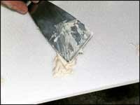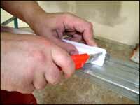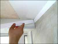 | Когда плитка наклеена займемся потолочными плинтусами. Подрежьте те края плинтуса, которые будут стыковаться в углу. |  |