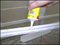 | Плотно прижимая последовательно клеим плинтуса по периметру комнаты. |  |