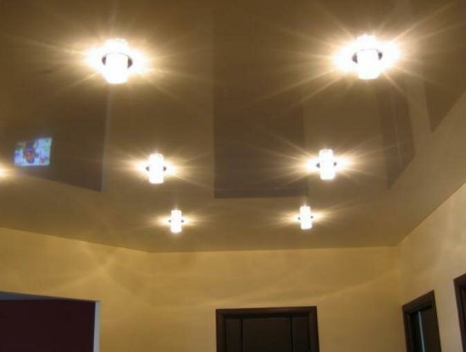 ·        Если стены квартиры настолько низки, что вы не имеете ни малейшего желания устанавливать гипсокартонную конструкцию, можно монтировать натяжной потолок со встроенным точечным освещением. В этом случае очень хорошо будут смотреться осветительные приборы имитирующие кристаллы – они чрезвычайно красиво будут рассеивать световые лучи, создавая тем самым великолепную, необычную и чрезвычайно красивую картину.