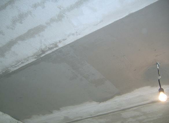 Процесс выравнивание может пойти одним из двух вариантов: сухому либо мокрому. Чем они отличаются друг от друга? В мокром варианте вы используете строительные растворы (шпаклевка, штукатурка). При использовании штукатурки вы сначала очищаете потолок от слоя старой шпатлевки либо краски, потом хорошенько промываете поверхность водой, далее обрабатываете ее так называем антисептиком, наносите грунтовку. Если это будет необходимо, применяете армирующую сетку.
