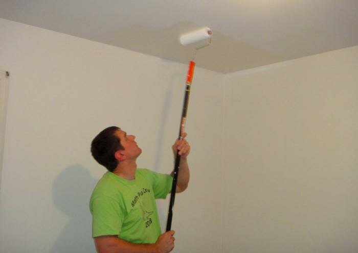 Для того чтобы покраска потолка была как можно более качественней, исправьте недостатки, которые появились после высыхания первого слоя. Для этого осмотрите потолок при дневном посещении, так как именно таким образом легче увидеть дефекты покраски. Наносить второй и третий слои можно только после их устранения.